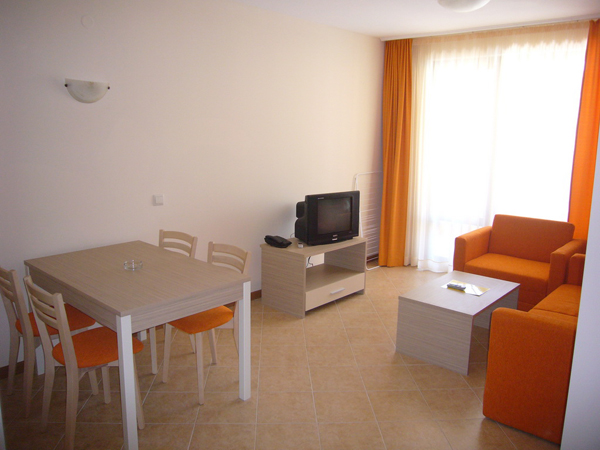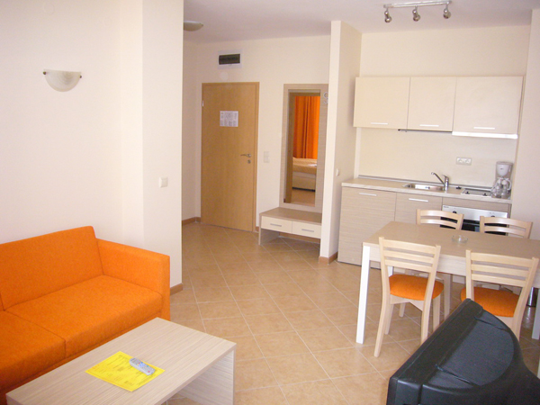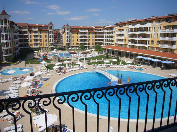 A Royal Sun Aparthotel az egyik legnagyobb üdülő komlexum Naposparton belül. A létesétmény 450 méterre található a homokos tengerparttól. Az elszálásolás studió lakásokban, illetve 1-2 szóbás apartmanokban történik amelyeknek területe 37-67 m2-ig terjed. Az üdülő létesétmény területe 45,000 m2 ahol 24 órás portaszolgálat áll a vendégek rendelkezésére.